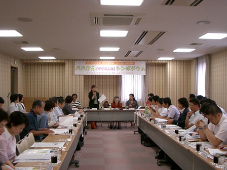 連合兵庫に要請をして、組合員の方(今回は、基幹労連さんが中心)に参加していただき、子育てと仕事の両立というテーマで、幅広く出席者から意見を聞き、委員である議員のメンバー、県市の関連する課の方、一緒に考えていこうというものです。(シンポジウムという名称は、できれば講演も、と最初思っていたのでついていますが、意見交換会に近いです。)